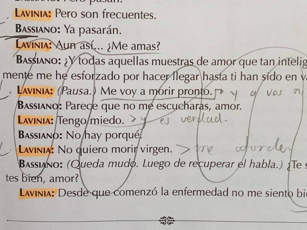 “Valentina, haga como que la violan”. Me pregunto por la violencia que reside en el despojo del cuerpo dispuesto a representar la tragedia. Me pregunto por ese espacio que hay entre el cuerpo propio y el cuerpo representado. Entre el cuerpo de Valentina y el cuerpo de Lavinia. Desde ese espacio, el que queda entre la representación y el cuenco que representa (el cuerpo) escribo estas palabras. Porque de este robo de mis gestos, mi tranquilidad y mi cuerpo, solo me han quedado el enojo y el miedo.