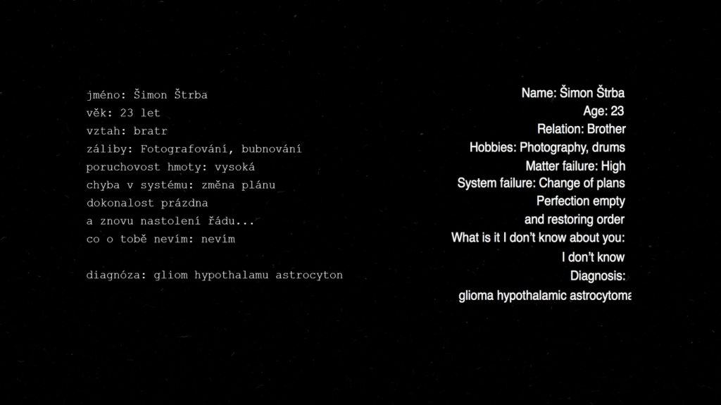 En la ausencia de memoria de Šimon, Nora llama al mejor amigo de su hermano y los dos mantienen una conversación sobre la condición y las consecuencias de su enfermedad, mientras vemos cómo Šimon hace un ritmo con sus dedos sobre la mesa del comedor y se come un pastel. A continuación aparece una ficha técnica que nos revela más detalles de la vida de Šimon.