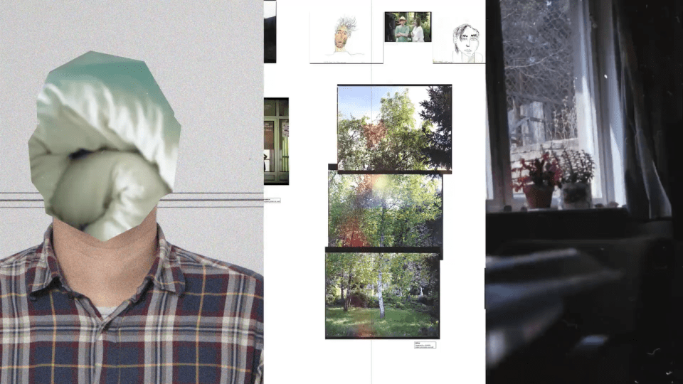 Posterior al recurso de animación vemos imágenes fragmentadas en tres pantallas (un árbol, una foto de la infancia, una cobija enrollada, el cielo, una ventana, entre otras) que aparecen y desaparecen a gran velocidad, junto con un diseño sonoro de percusiones aceleradas que imitan el sonido de los dedos de Šimon contra la mesa. El ritmo que llevan aquellas experiencias familiares son la forma que Nora encuentra para relacionar la experiencia de memoria de Šimon con la nuestra. Múltiples imágenes que se dividen, se repiten y desaparecen antes de poder recordarlas y ordenarlas en nuestra mente representan lo inmediato y lo pasajero en la mente de Šimon. Fotos recortadas con estas mismas imágenes en el lugar donde van las caras traen a cuenta un aspecto adicional de la pérdida a corto plazo de la memoria ¿Cómo se enfrenta alguien a su reflejo esperando ver un sujeto adolescente y encontrándose a un adulto? ¿Cómo se mantienen viejas relaciones interpersonales si no se tiene presente que las personas cambian? ¿Cómo se crean nuevas relaciones si no se recuerda a las nuevas personas que aparecen en la vida? Es por esto que la relación de familia y cuidado es crucial en la vida de los dos hermanos.