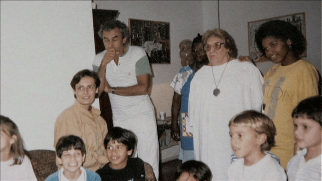Lins sugiere que las niñeras están al lado de los niños blancos, porque serían las únicas capaces de mantenerlos tranquilos para el retrato. La película recurre incluso al recurso de montaje de pausar las imágenes de los vídeos donde aparecen las niñeras de un vistazo, como por casualidad, para captar su presencia fugaz. En estos casos, es como si, al encuadrar a los niños, el dispositivo cinematográfico dejara escapar algo más de su realidad. Si en los registros oficiales, la presencia fundamental de la niñera en la vida del niño se mantiene muchas veces al margen, en la vida material, ella ocupa el centro.