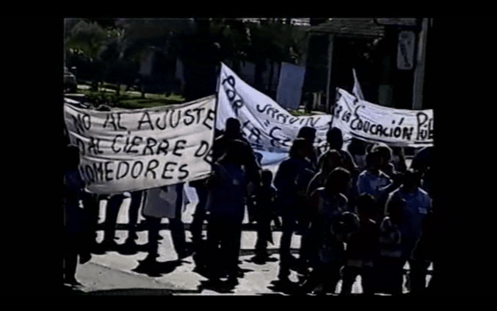 Para esta fecha, todo estaba en ebullición: mamá y papá, docentes precarizadxs de escuelas públicas de la zona sur del conurbano bonaerense, intentaban arreglárselas para darnos de comer a mi hermanx y a mí, que para ese entonces teníamos cuatro y seis años. Mamá y papá participaban de la huelga docente, iban a cada marcha convocada en la parte sur del conurbano. Con la cámara pegada en la mano más que nunca, sumado al curso en la Universidad, papá entendió que el registro documental era parte de su militancia; el contexto le había dado la manija necesaria para empezar a pensar una película acorde a los tiempos que corrían: un documental sobre la lucha de lxs docentes.